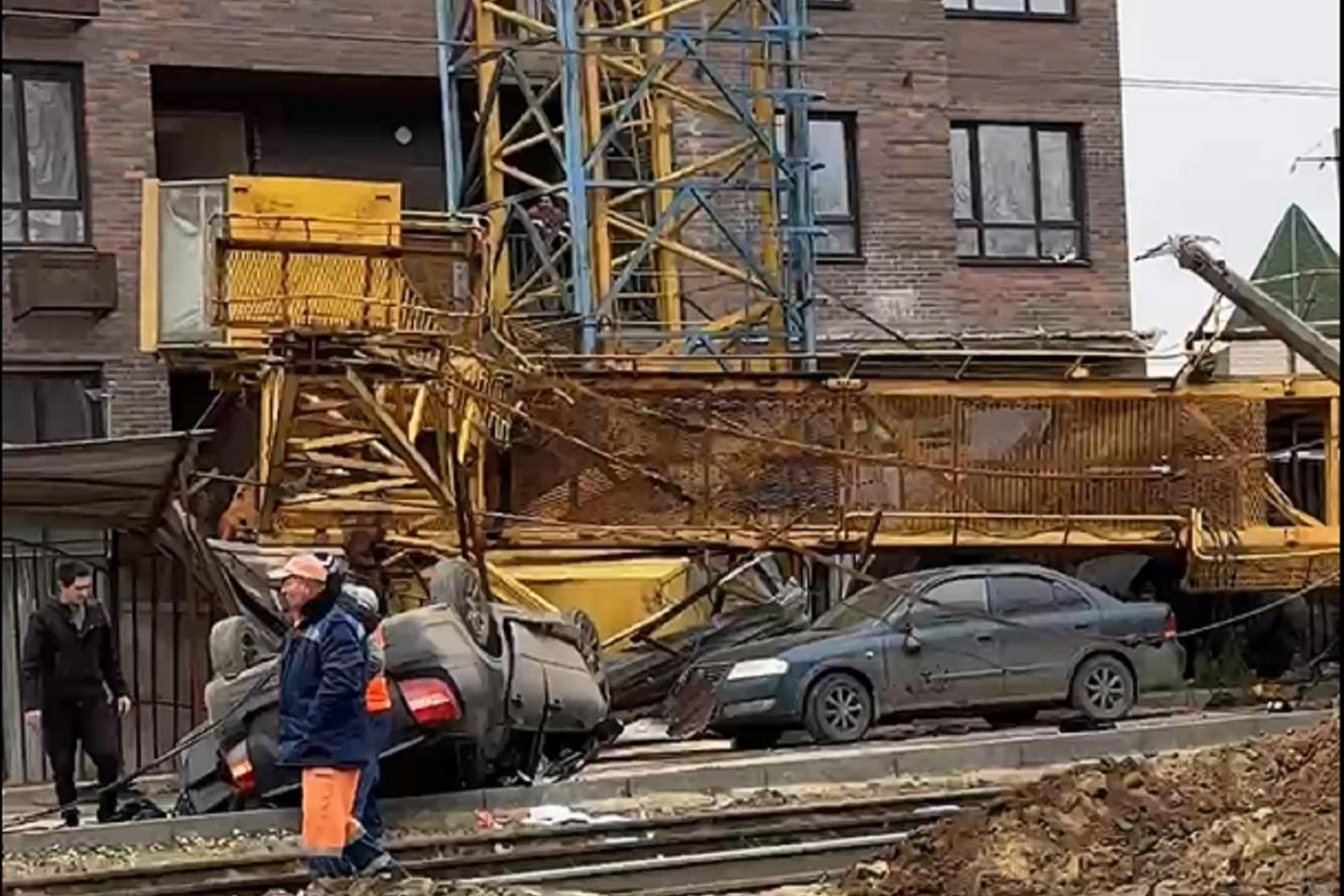 В центре Волгограда рухнул башенный кран. Двое раненых, раздавлены машины — видеоЧП произошло на улице Двинской. Из-за трагедии изменено движение популярных маршрутов трамваев