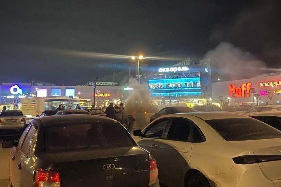 На многолюдной парковке ТЦ «Акварель» в Волгограде сгорел автомобиль: видеоЧто стало причиной пожара — пока неизвестно