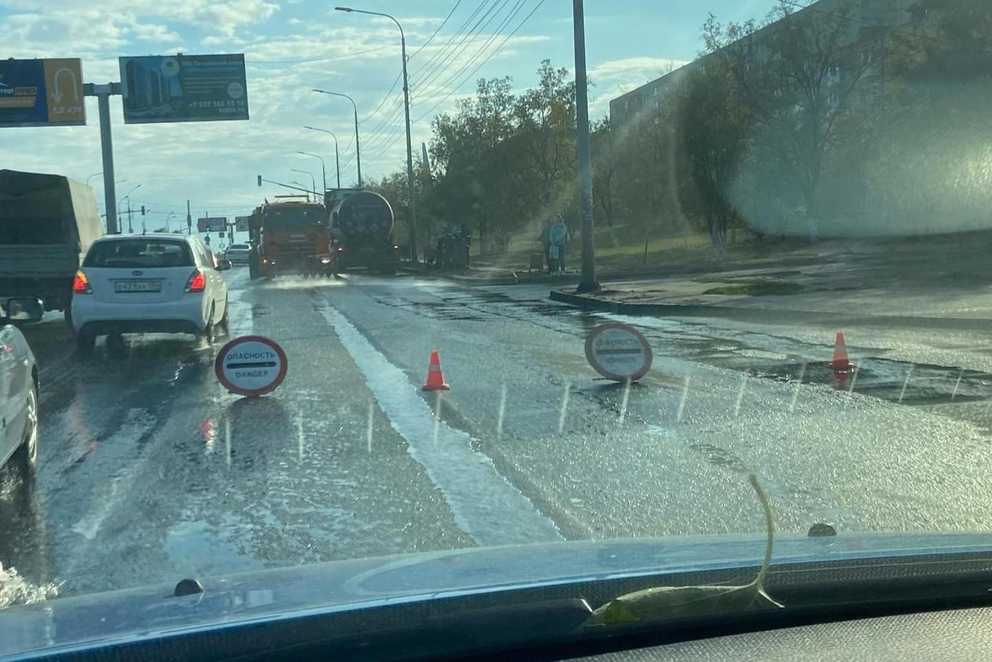 «Движение закрыли, там что-то течет»: бензовоз залил главную магистраль Волгограда нефтепродуктами — видеоВокруг места происшествия уже скапливается пробка