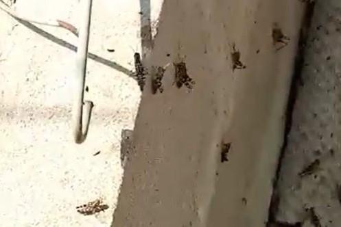 Атакующие Волгоградскую область полчища саранчи попали на видеоНа трассе в Средней Ахтубе