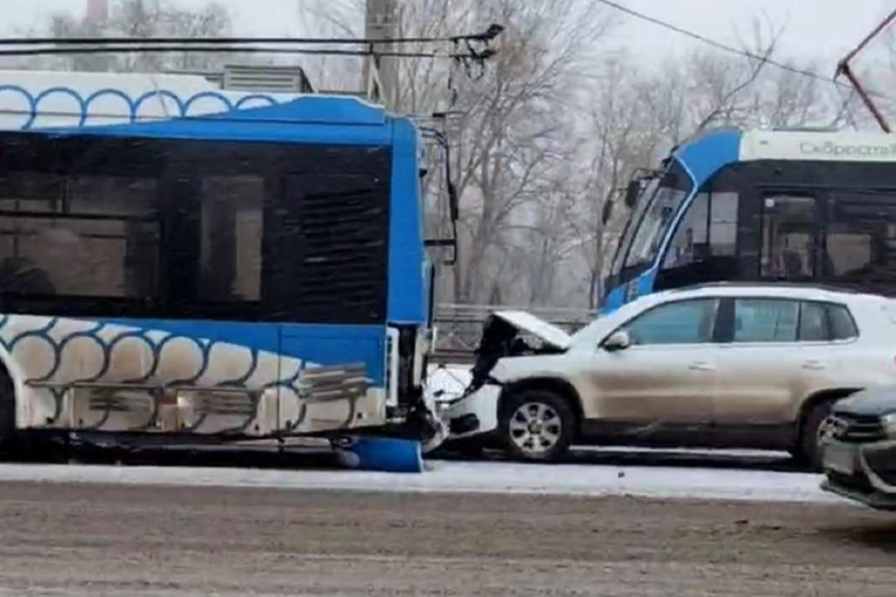 Проспект Жукова встал намертво: в центре Волгограда троллейбус догнал RenaultАвария произошла в утренний час пик